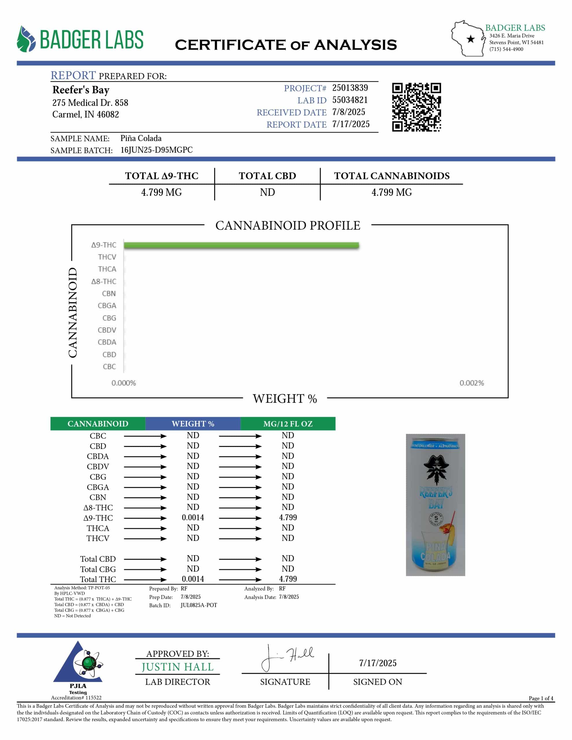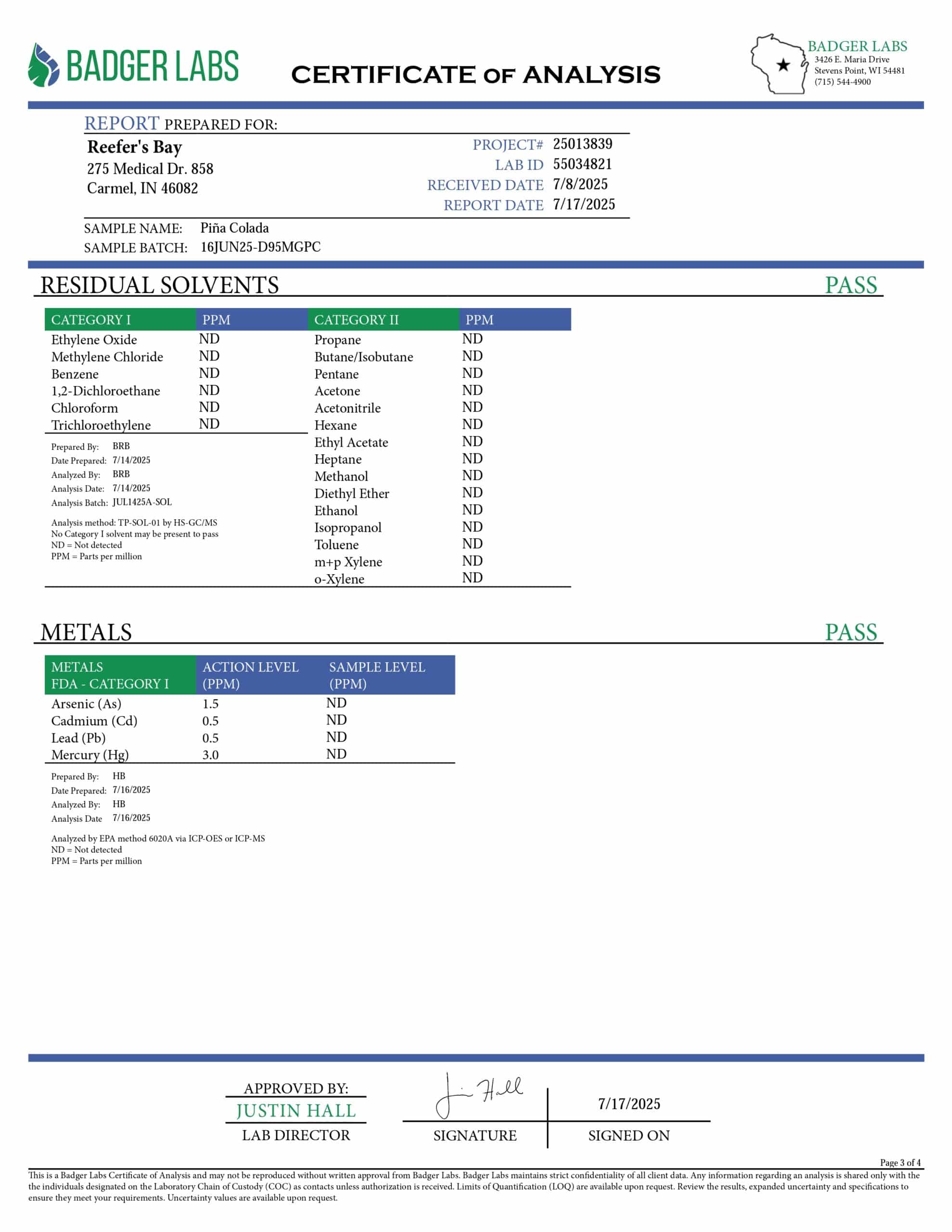 Reefer’s Bay uses only high-quality natural and organic hemp and has the most advanced and capable cannabis R&D in the industry. This allows Reefer’s Bay to deliver the highest potencies and purities in the industry, with full dispensary-level lab testing to ensure safety.